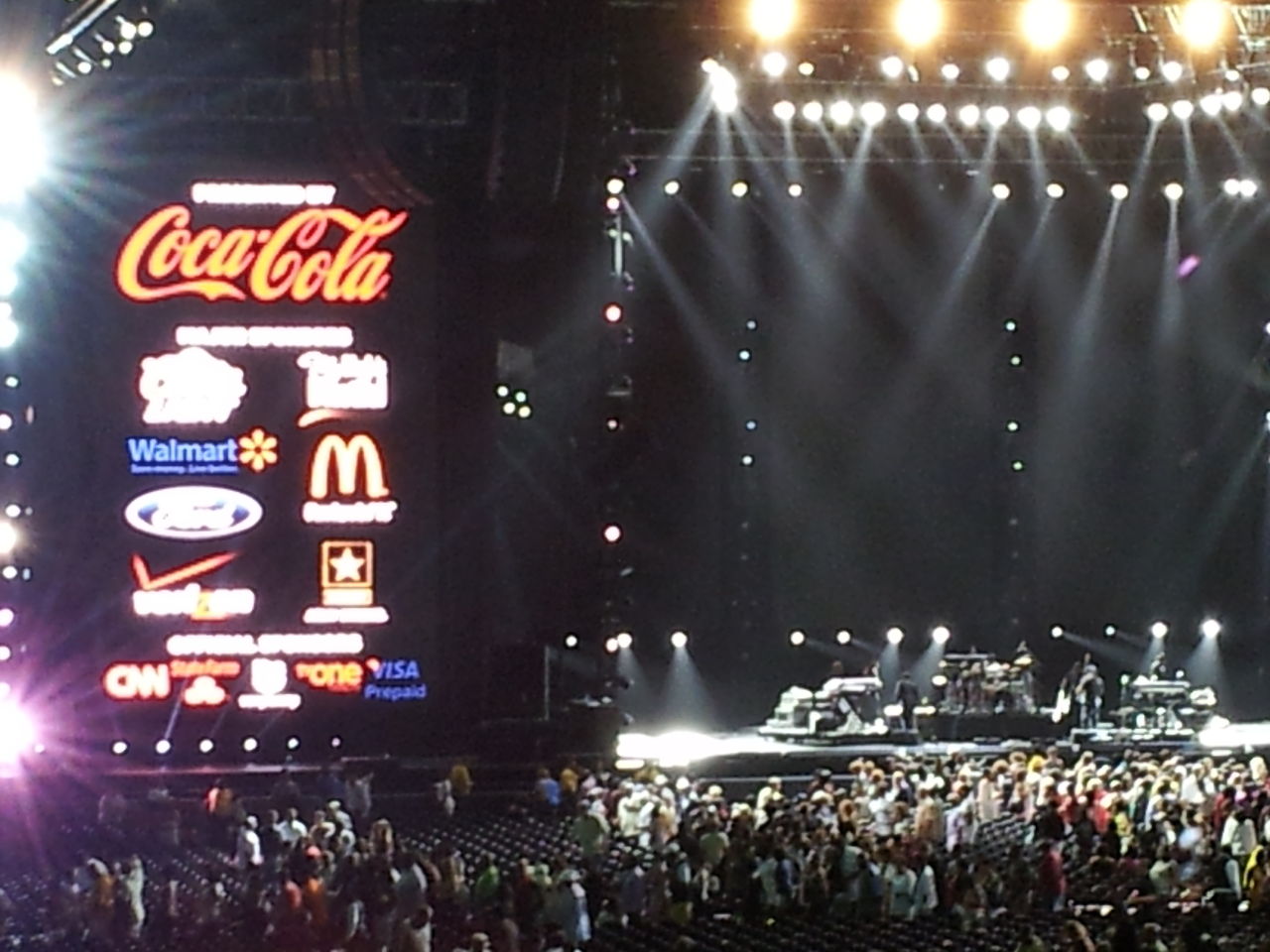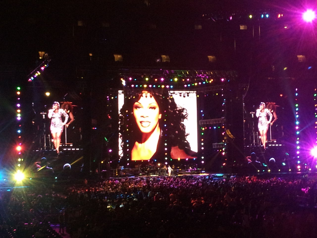 それでですよ、普通なら此処で「Respect」を歌ってフィナーレと思いきやアレサ帰っちゃったんです。でも、コールも悪いんですけどね、もう終わりかのように送って行ってしまったので。そうは言っても、遅くまで残ってる観客は疑問だらけ。「まだリスペクト聴いてないよ」との声でオーマイゴッド。。。気を利かせて、演奏隊も急きょアレサが居ないまま「Respect」を演奏するものの、アレサは戻ってきませんでした。会場、超ザワザワ。自分も苦笑でした。だって、最後、拍手無かったもん。会場、ちょっと沈黙してた。それを騙すかのように、鼓笛隊(?)みたいのが出てきて、なんか空気を変えようと演奏してたけど、無意味。疲れに拍車。実は、この時点で24時10分。。辛いよね。でも、このフェス来なければ分からなかった発見。アメリカでの今のアレサの表現、アレサを受け入れる観客の反応、そこが面白かったなぁ。