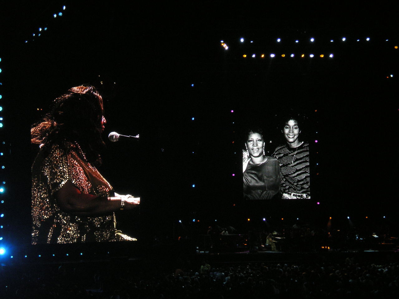 ここでアレサは一旦舞台袖へ。スクリーンには、Aretha Franklin Tribute とて、Mary J. Blige, Fantasia 等、アレサを称えるコメントと、アレサの偉大なバイオグラフィーをまとめた映像が5分ほど。